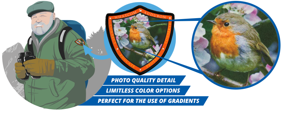 Printed on twill fabric. Ideal for designs with multiple colors or gradients.